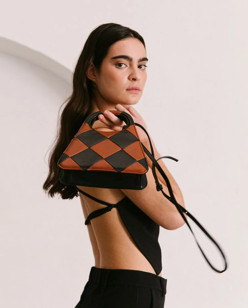 Black and brown clutch bag
