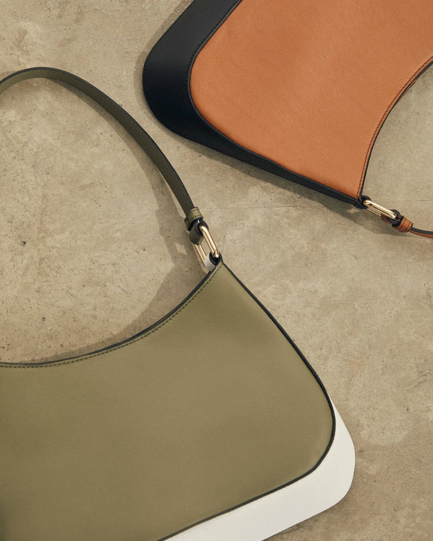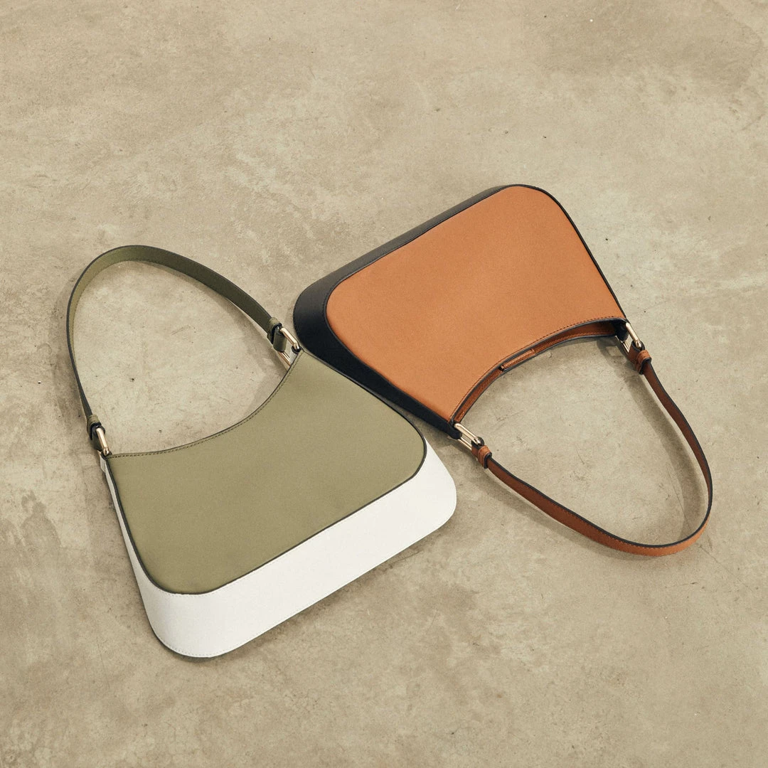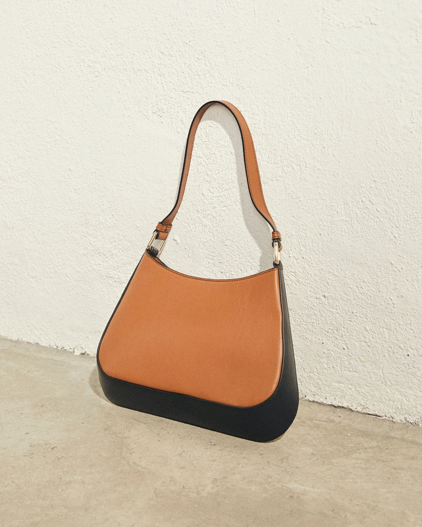 Cut out of cow leather, this sophisticated rounded shape on the sides shoulder-bag is THE piece all of us should add to our wardrobe this season.