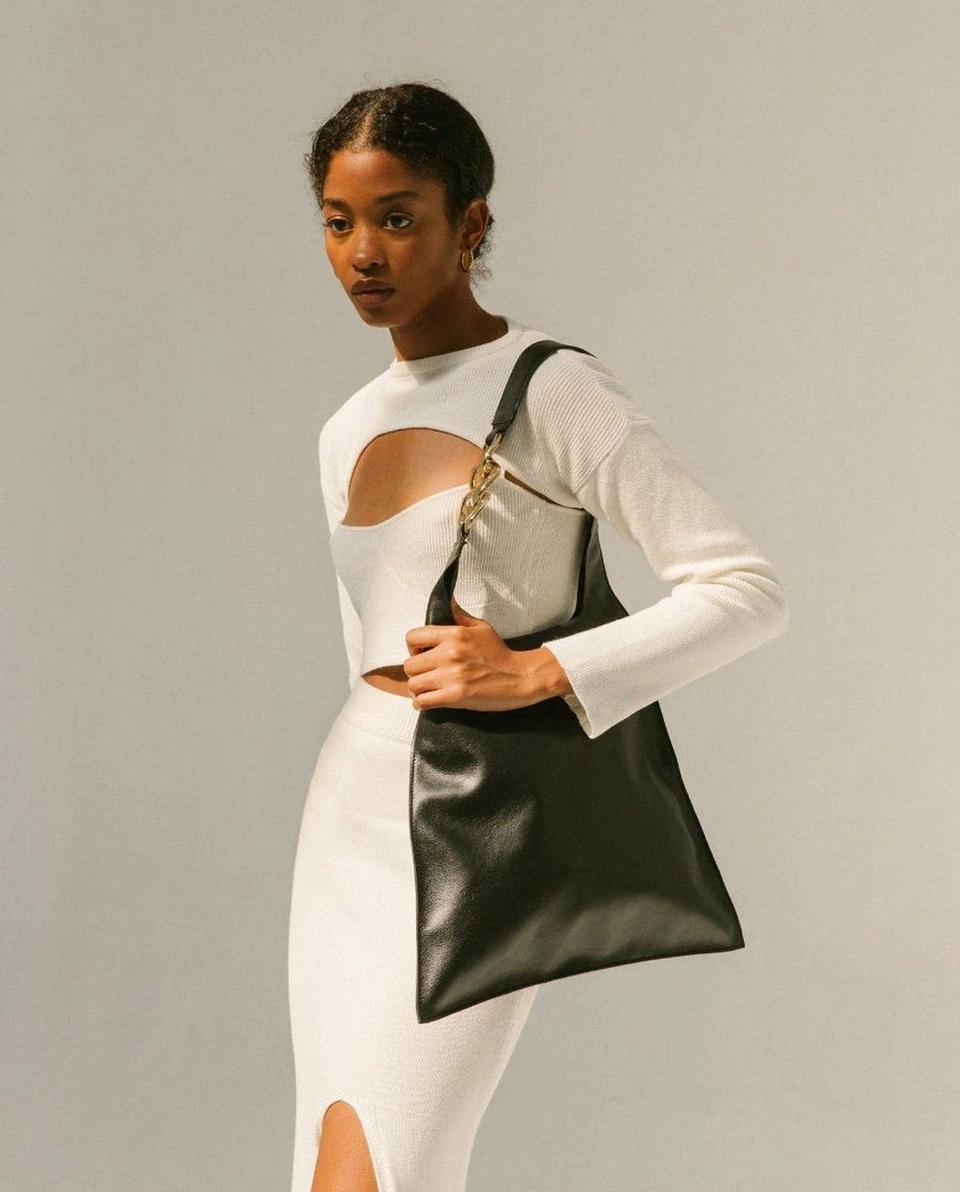 The L Chain loves to be taken for a spin. Its perfectly curated dimensions allow it to be big enough for your laptop, but small enough for casual wear. Looks best for a monochromatic look.