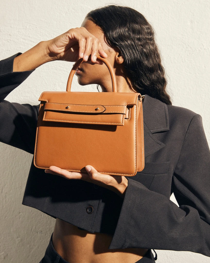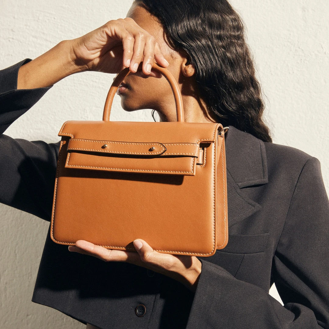 Crafted from cow leather the M is THE retro-inspired piece that every girl should own. Wear yours with flowy dresses and tailored blazers.