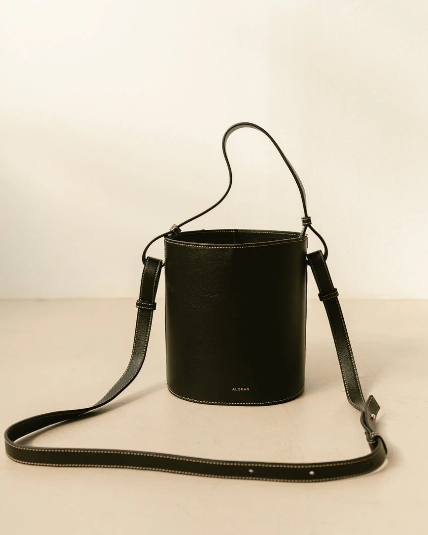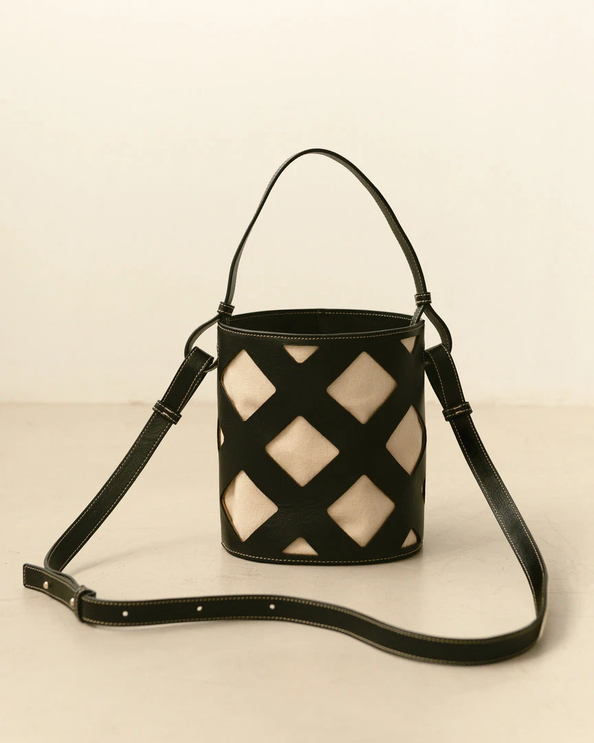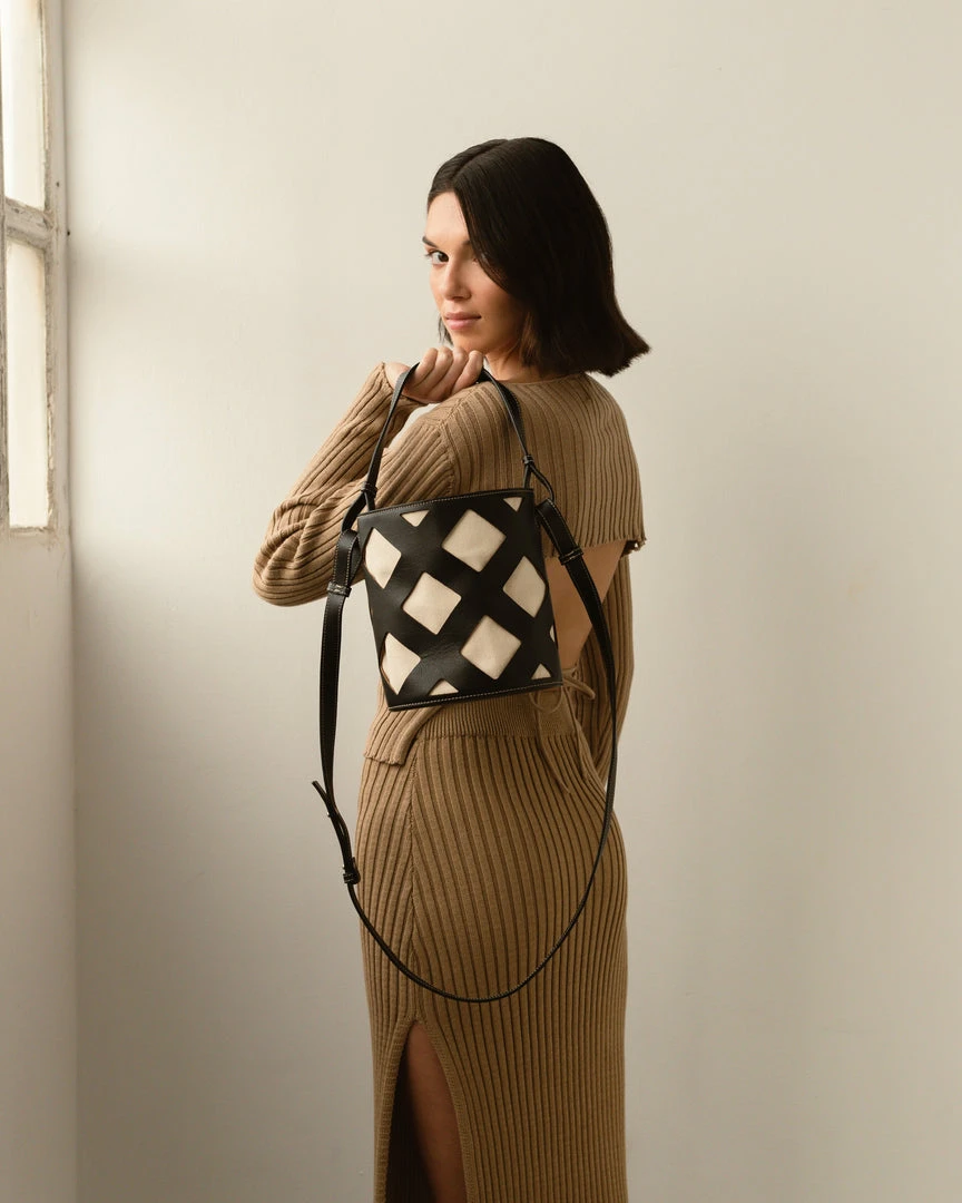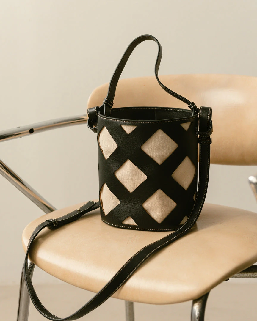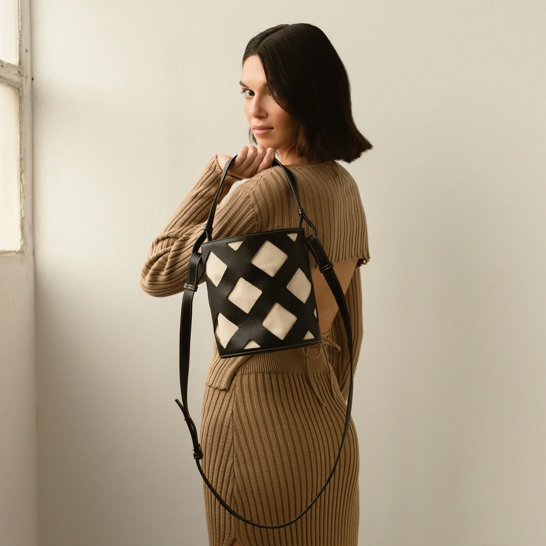 Black and white bucket bag