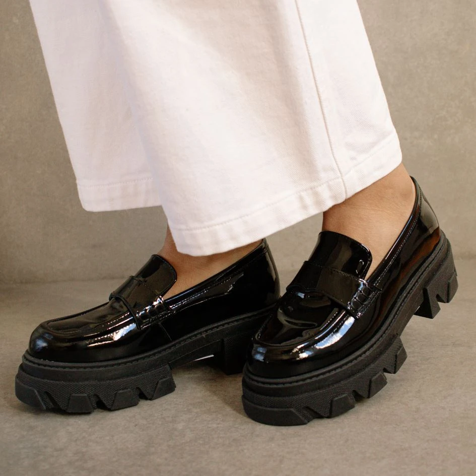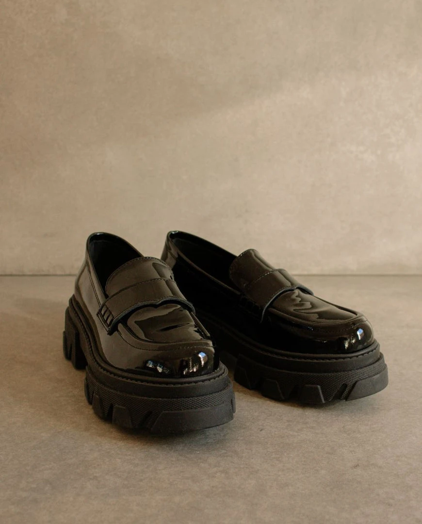 Black patent leather loafers