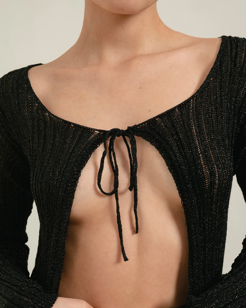 Black ribbed long sleeve glitter knit top