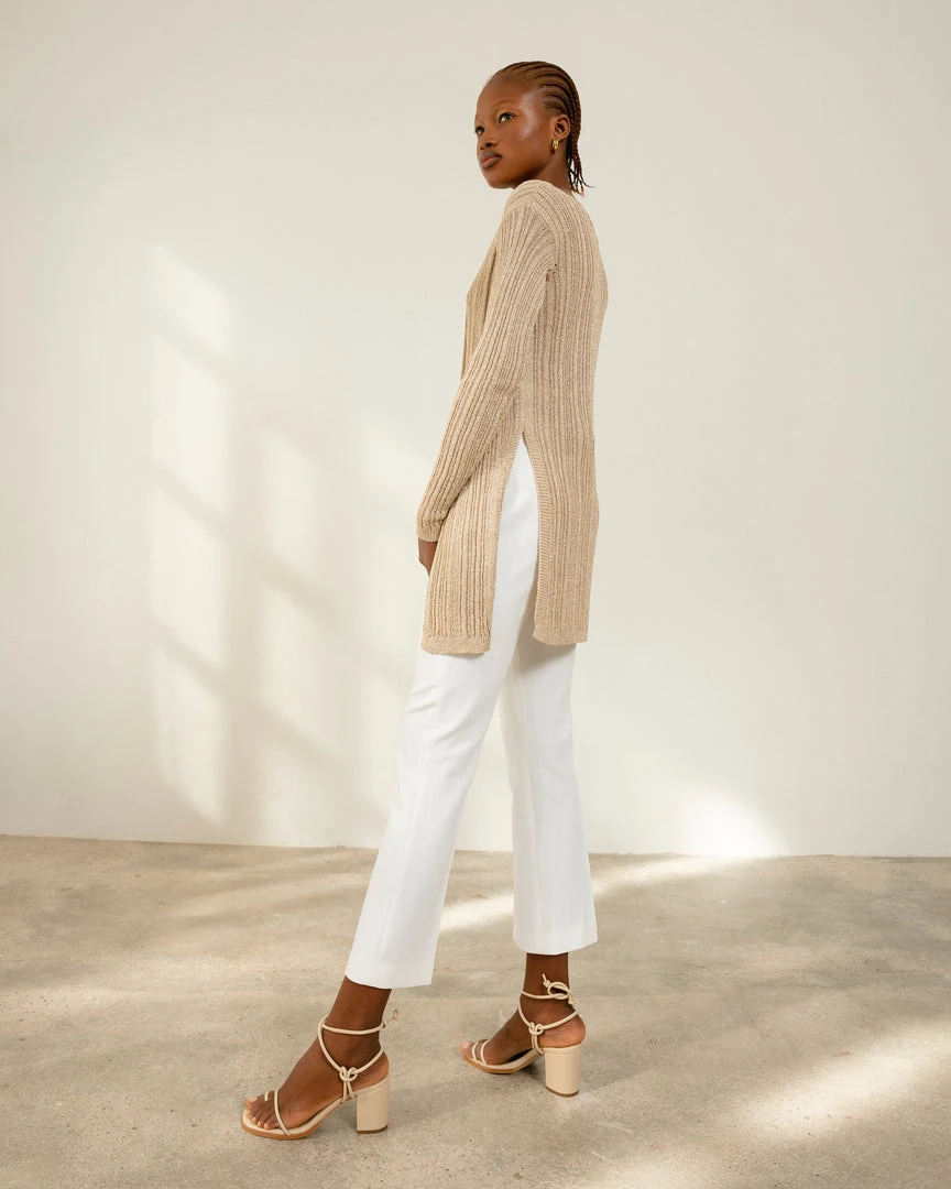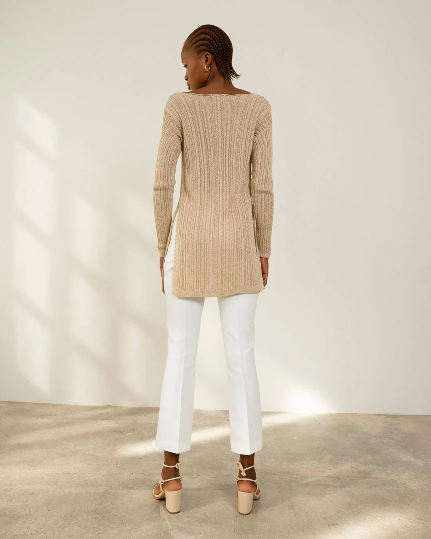 Champagne ribbed long sleeve glitter knit top