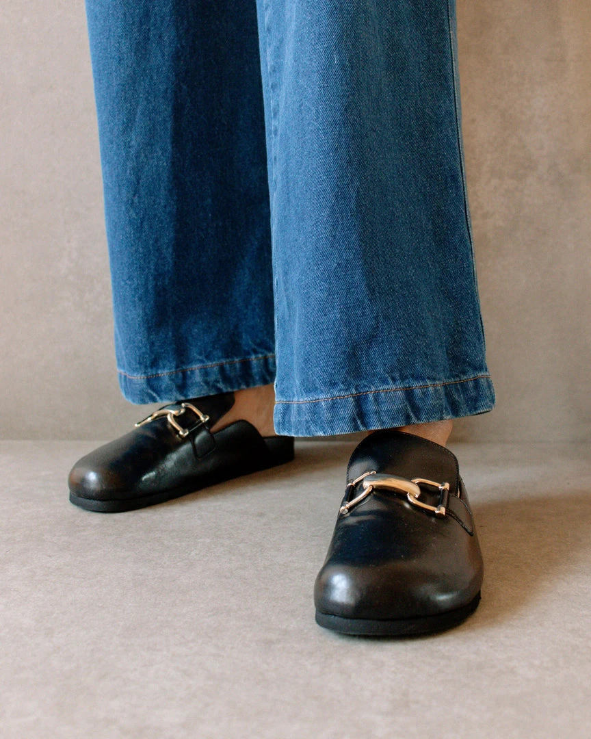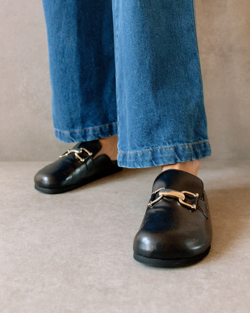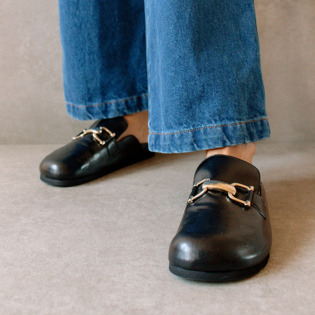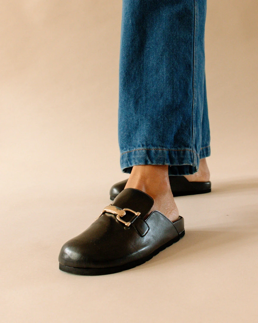 Mules with a front gold chain for maximum vintage vibes. Open heel and comfortable sole so you can sport Benny in public or at home.