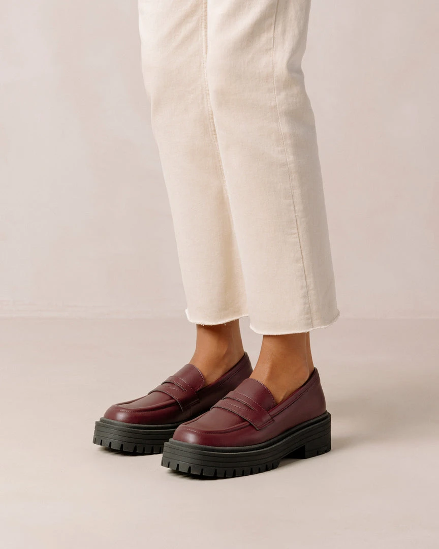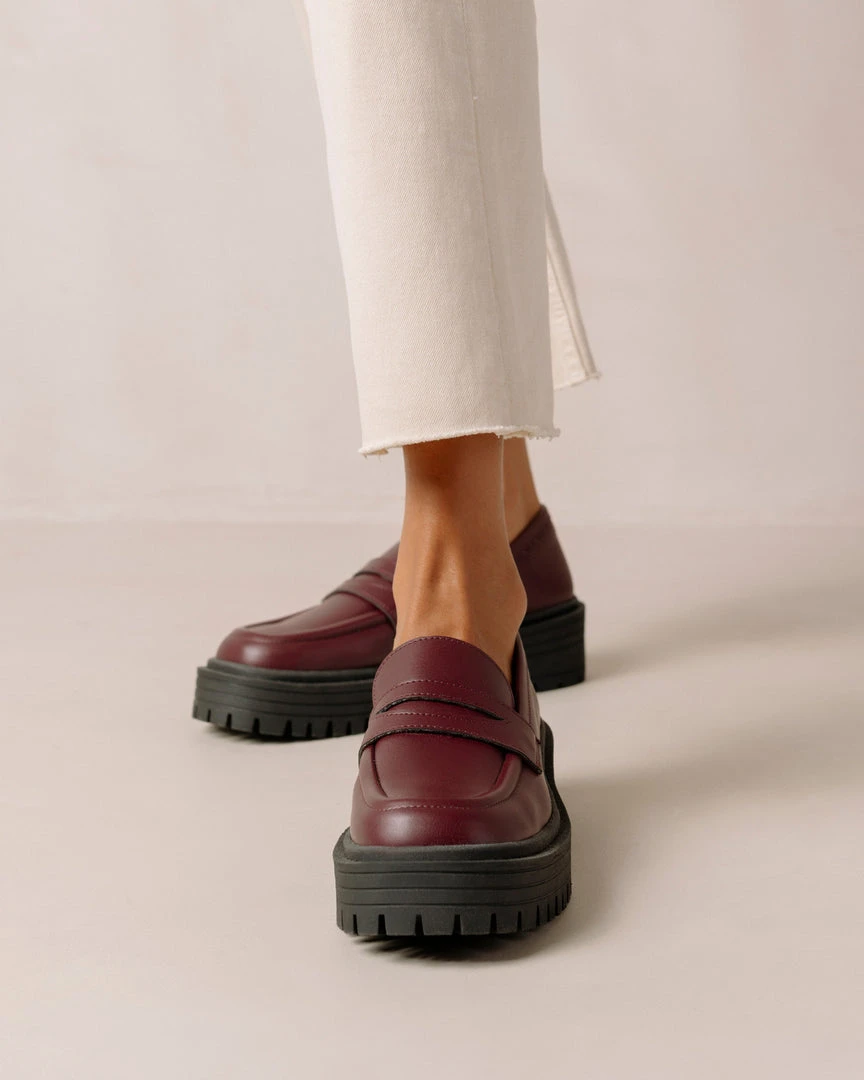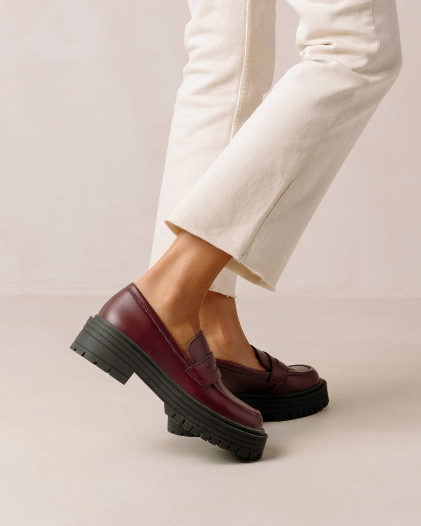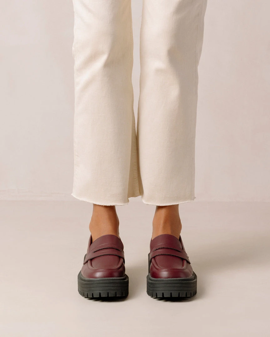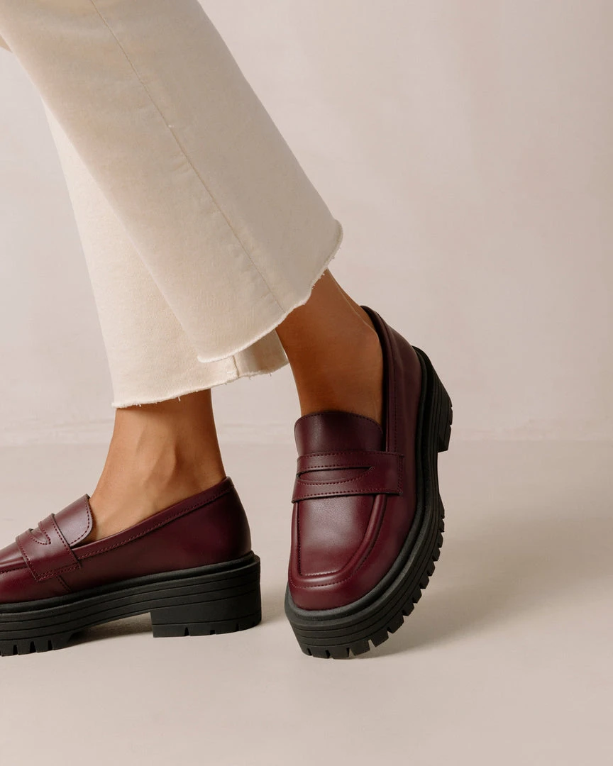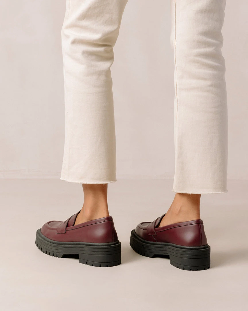 Sophisticated loafer with a thick track sole, a round toe and lots of personality. Perfect to wear in between seasons.
