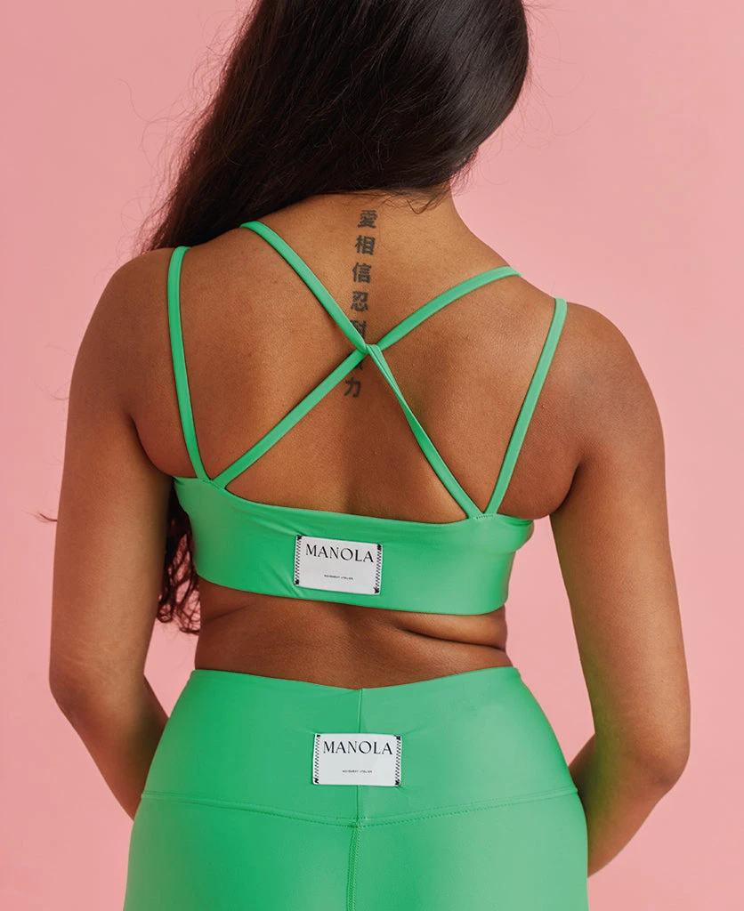 The Crossed Back top is our pretty little thing. It’s squared neck, crossed back and invisible elastic underneath your breasts makes this piece look fabulously cute and provide a strong support. Our signature and softest fabric provides a second skin feeling, trust us: it’s the comfiest ever. Suitable for slow sport activities and classes, everything from yoga to a light jog.