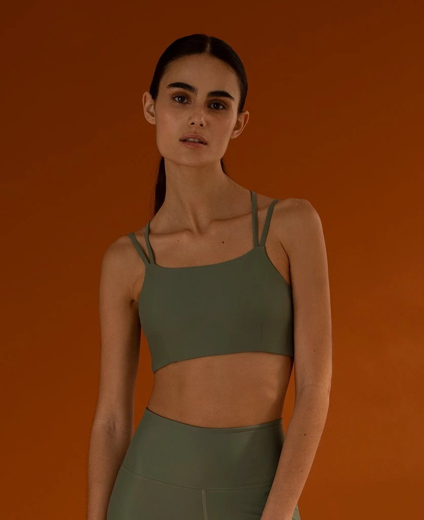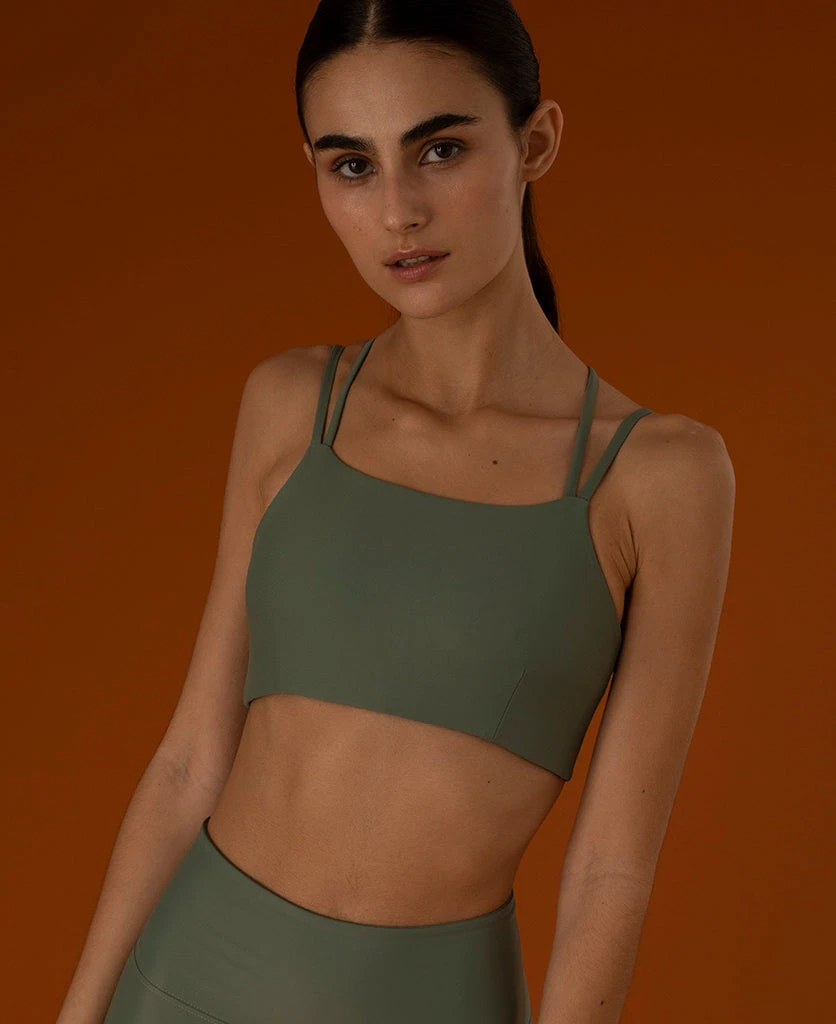 The Crossed Back top is our pretty little thing. It’s squared neck, crossed back and invisible elastic underneath your breasts makes this piece look fabulously cute and provide a strong support. Our signature and softest fabric provides a second skin feeling, trust us: it’s the comfiest ever. Suitable for slow sport activities and classes, everything from yoga to a light jog.